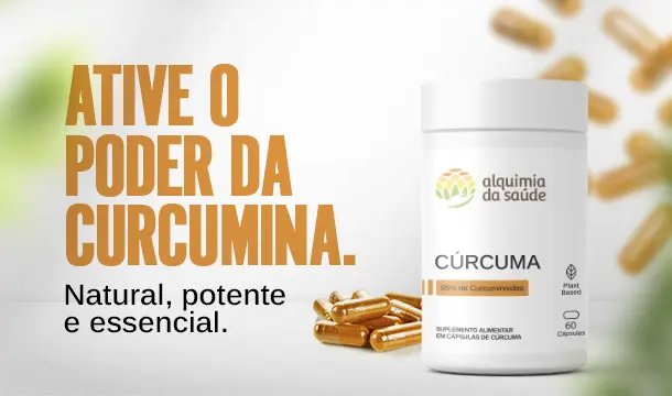 A Cúrcuma da Alquimia da Saúde é um suplemento natural à base de curcumina, o principal ativo da planta Curcuma longa. Sua fórmula padronizada com 95% de curcuminoides atua como potente anti-inflamatório e antioxidante, ajudando na saúde articular, digestiva, imunológica e metabólica. É ideal para quem busca mais vitalidade, bem-estar e equilíbrio natural no dia a dia.