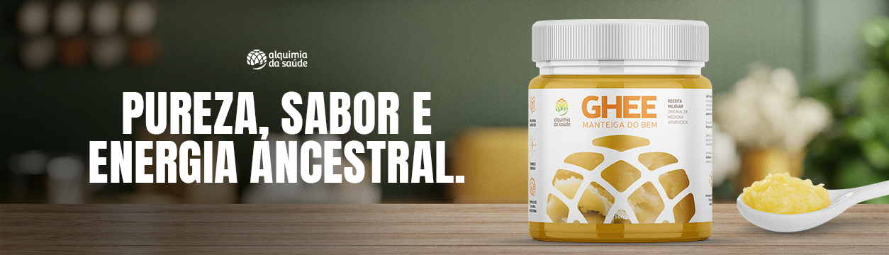 A Manteiga Ghee da Alquimia da Saúde é uma gordura clarificada e purificada, elaborada a partir da manteiga tradicional, mas livre de lactose, caseína e impurezas. Durante o processo artesanal de preparo, toda a água e os sólidos do leite são cuidadosamente removidos, resultando em um alimento puro, estável e altamente nutritivo. Sua cor dourada e brilho intenso lembram o ouro líquido — símbolo da pureza e vitalidade que ela representa. Rica em vitaminas A, D, E e K, a Ghee é considerada uma das fontes de gordura mais nobres e equilibradas. Seu uso regular contribui para fortalecer o sistema imunológico, promover a digestão, melhorar a absorção de nutrientes lipossolúveis e nutrir ossos, pele e cabelos. Por sua alta estabilidade ao calor, é ideal para cozinhar, refogar ou finalizar pratos, sendo uma excelente alternativa aos óleos refinados e margarinas industriais.